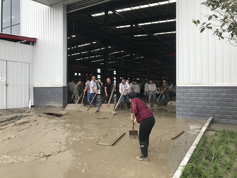 2018年7月11日,我县经历了建国以来最大的洪灾,宏达杭萧钢构、驾考服务科二、科三考场以及刘营、花园、西平、百顷等镇乡污水厂区均受到洪水深度淹没,受灾较为严重。在洪水退后,我公司第一时间组织员工和相关技术人员积极开展自救和恢复生产工作。一是迅速清理受灾区域的淤泥、滞留污水和各类漂浮杂质等,快速恢复厂区环境和交通。二是组织技术人员和专家迅速对机器设备进行专业清理和检修,评估受损情况,加快机器设备运转恢复。三是加强厂区建筑物和用电、用气以及危险化学物品保管安全隐患排查,科学制定整改方案,防止出现次生灾害。四是积水严重的项目建设工场基坑加班加点抽水排涝,及时排查和整治滑坡等安全隐患。五是迅速完善应急预案,再落实再部署,强化汛期值班值守责任,做好防洪物资储备,确保我公司所负责的项目工地、所管理的经营企业平稳顺利地渡过汛期,最大限度地减少国有资产因灾损失。