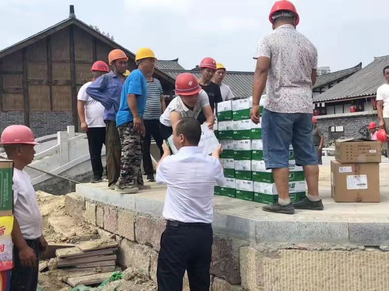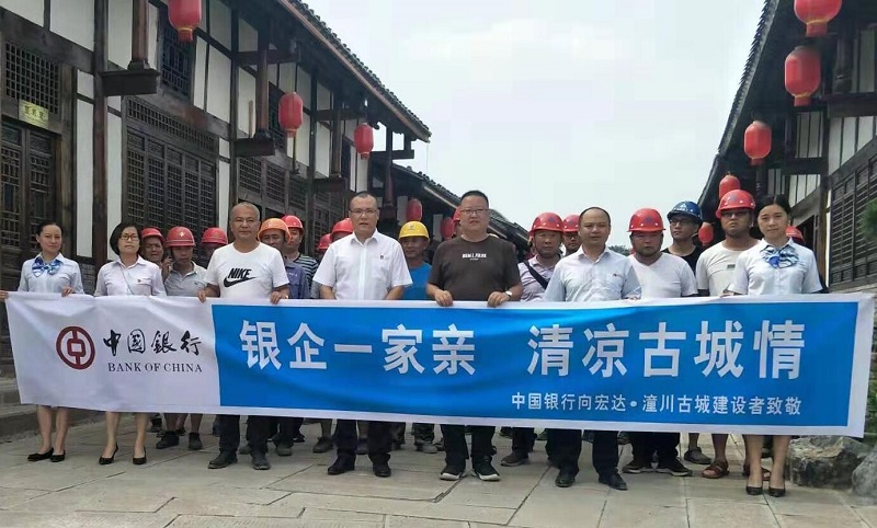 8月22日下午,中国银行三台支行行长李明带领支行班子成员,到潼川古城项目现场开展“银企一家亲,清凉古城情”防暑慰问活动。李明代表中国银行三台支行为项目各参建单位管理人员及作业人员带去了矿泉水和藿香正气液、板蓝根等防暑药品,为抗战在高温一线的建设者们送上了一份夏日清凉。