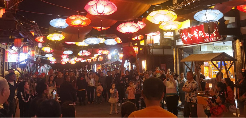 为了让游客在假日期间有更好的体验,经过多轮业态调整,潼川古城特别策划了曲艺快闪类活动,包括评书、柔术杂技、功夫杂技等,各类活动在古城各个点位和主要街区巡回表演,为游客带来视觉、听觉的奇特新体验。