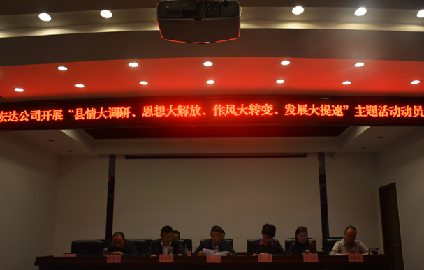 10月10日,宏达公司在7楼会议室召开“县情大调研、思想大解放、作风大转变、发展大提速”主题活动动员大会,会议由集团公司常务副总经理李永秋主持,公司全体员工参加了动员会。