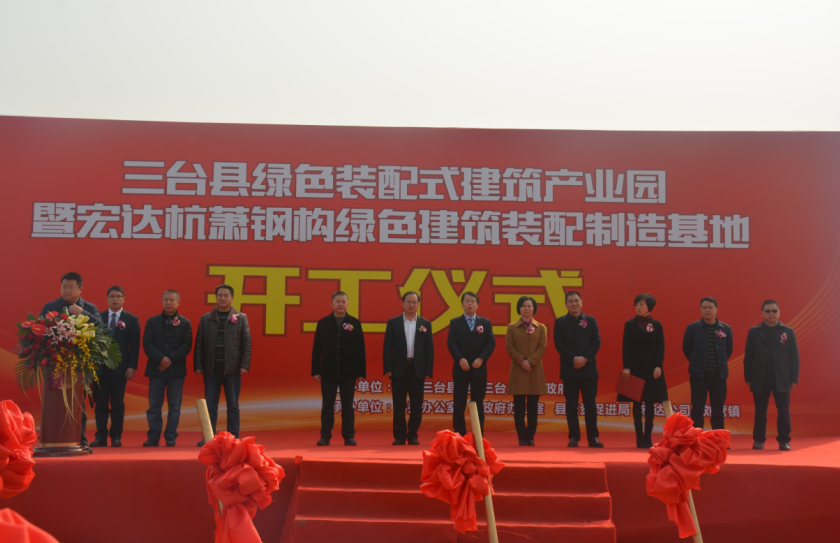 1月24日下午,宏达杭萧钢构在刘营镇举行了三台县绿色装配式建筑产业园暨绿色建筑装配制造基地开工仪式。县委书记马辉,县委副书记、县长吴明禹,县人大主任杨增辉,县政协主席贺强华等县领导和相关部门负责人参加了开工仪式。