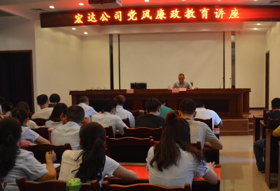 为进一步增强宏达公司党员干部和员工廉洁从业意识,增强防腐拒变能力,防范渎职侵占行为,全面加强党风廉政建设,6月2日下午,宏达公司纪委邀请县纪委常委、监察局副局长马进涛前来公司进行了党风廉政警示教育专题讲座。公司全体高管、中层管理人员及全体员工到场参加了学习。